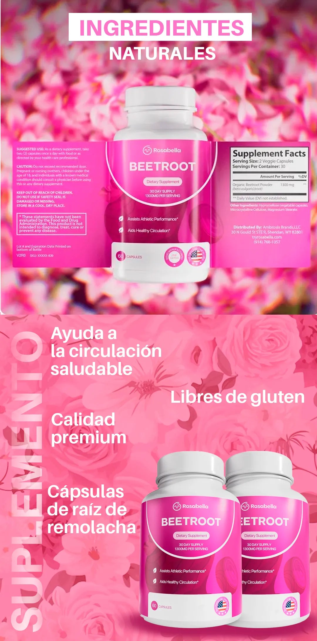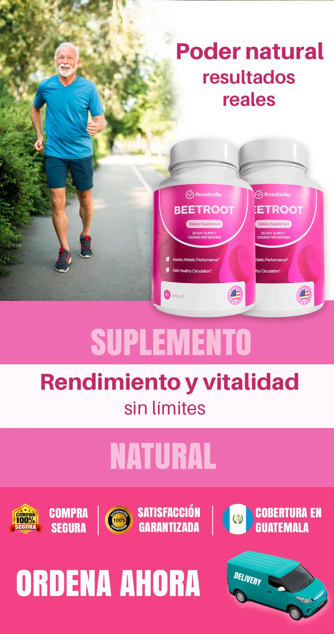 Ingrediente principal: extracto de remolacha natural (ráiz de remolacha) — rico en nitratos, betalains y antioxidantes.